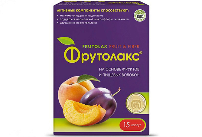 "ФРУТОЛАКС" на основе фруктов и пищевых волокон способствует регулярности дефекации и формированию стула нормальной консистенции. Благодаря комбинации активных веществ 4 растительных компонентов, "ФРУТОЛАКС" способствует усилению перистальтики, улучшению эвакуаторной функции кишечника, обладает очищающими и сорбционным свойствами.Капсула содержит 99% компонентов растительного происхождения (на основе фруктов (абрикоса, сливы), ревеня и свеклы).Не содержит сенны (бережное действие).Мягкое действие в ночное время (действие наступает через 8-10 часов после приёма).