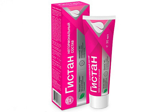 Крем для тела «Гистан» защищает и успокаивает чувствительную кожу, уменьшает покраснения, раздражения и усиливает процессы регенерации эпидермиса. Активные компоненты крема негормональной природы быстро впитываются в кожу, устраняют сухость и шелушение, способствуют облегчению симптомов кожной аллергии, при укусах насекомых, активизируют бактерицидные и восстанавливают защитные функции эпидермиса, облегчают дискомфорт от зуда, снижают отечность и болевые ощущения.