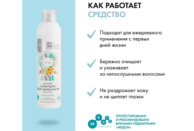 • Детский шампунь без слез для мальчиков «Чудо-сыночек» Ваш любименький малыш нуждается в трепетном уходе и нежной заботе! Подарите ему всё самое лучшее, что даёт нам природа.