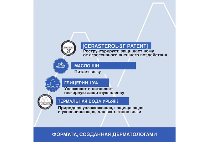 Средство ежедневной гигиены для сухой, очень сухой, атопичной кожи. Мягко очищает, предупреждает нежелательные эффекты при использовании жёсткой воды (принятии душа или ванной, умывания). Успокаивает зуд, уменьшает ощущение стянутости и дискомфорта. Увлажняет, восстанавливает и поддерживает защитные свойства кожи.