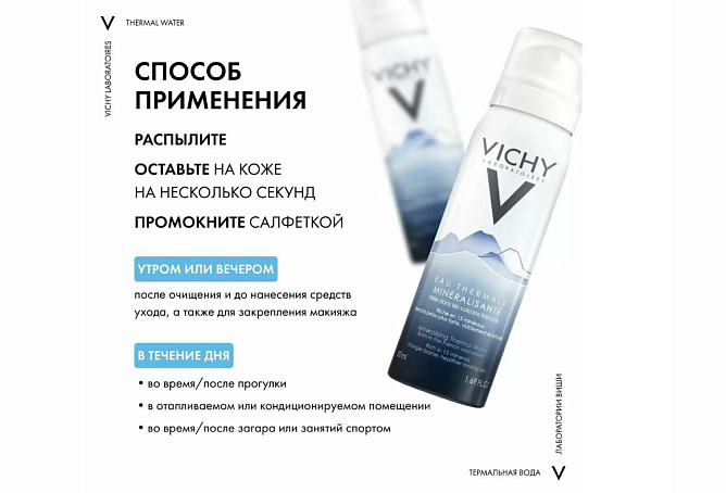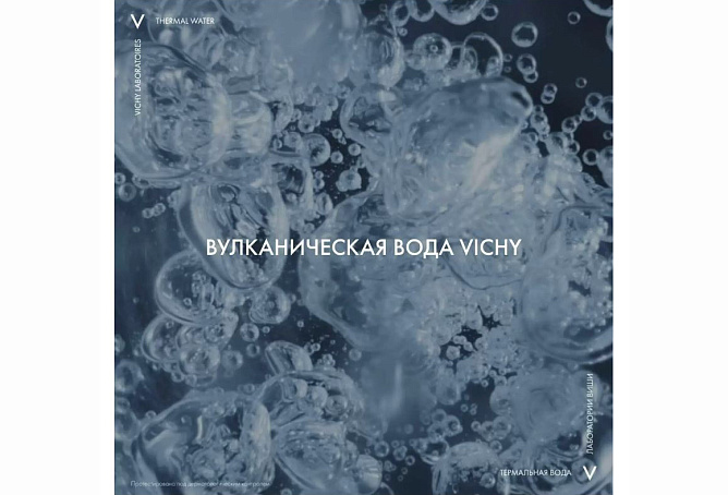 • Вулканическая термальная вода VICHY укрепляет, восстанавливает, нормализует рН, усиливает естественные барьерно-защитные функции кожи.
