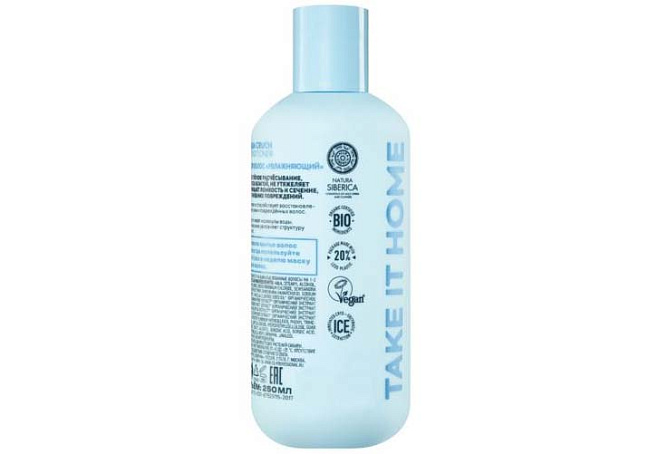 Aqua, Cetearyl Alcohol, Cocos Nucifera Oil, Cetrimonium Chloride, Behentrimonium Chloride, Schisandra Chinensis Extractwh (органический экстракт лимонника нанайского), Sodium Hyaluronate (гиалуронат натрия), Camellia Oleifera Seed Oil* (органическое масло камелии), Vaccinium Vulcanorum Fruit Extractwh (органический экстракт голубики вулканической), Iris Sibirica Root Extract* (органический экстракт ириса сибирского), Laminaria Angustata Extractwh (органический экстракт ламинарии северной), Nuphar Luteum Root Extract* (органический экстракт водной лилии), Distearoylethyl Hydroxyethylmonium Methosulfate, Phenyl Trimethicone, Dimethicone, Dimethiconol, Lauryl Glucoside, Hydroxyethylcellulose, Guar Hydroxypropyltrimonium Chloride, Benzyl Alcohol, Benzoic Acid, Sorbic Acid, Parfum, Citric Acid, Citronellols, Hexyl Cinnamal, Linalool. * – органические ингредиенты. WH – органические экстракты дикорастущих растений Сибири.