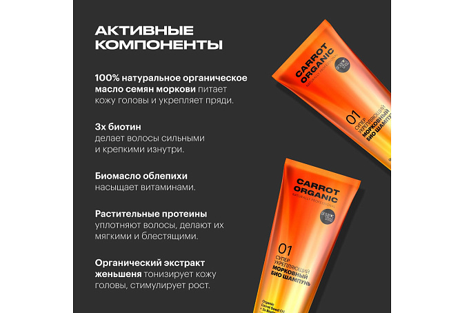 Органическое масло семян моркови питает кожу головы и укрепляет волосяные луковицы.