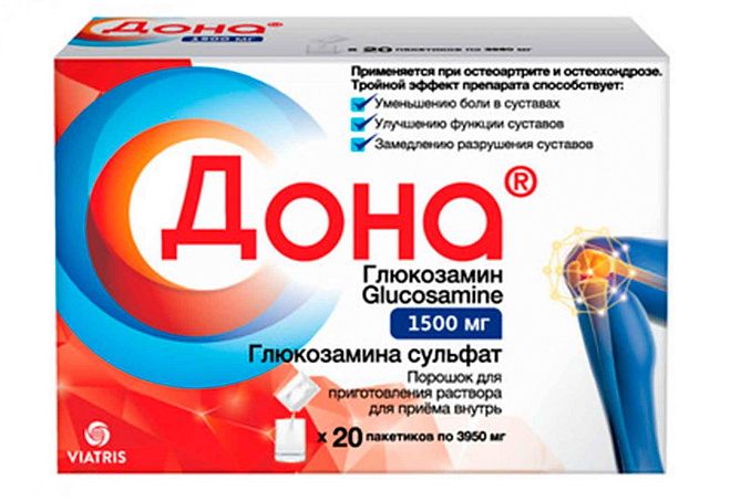 Восполняет естественный дефицит глюкозамина, стимулирует синтез протеогликанов и гиалуроновой кислоты синовиальной жидкости; увеличивает проницаемость суставной капсулы, восстанавливает ферментативные процессы в клетках синовиальной мембраны и суставного хряща.