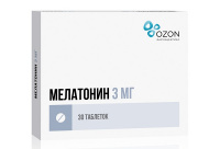 1 таблетка, покрытая плёночной оболочкой, содержит: действующее вещество мелатонин 0,30 мг или 3,00 мг; вспомогательные вещества: кальция гидрофосфата дигидрат ? 67,37/ 64,67 мг, целлюлоза микрокристаллическая 25,00/ 25,00 мг, кроскармеллоза натрия 2,00/ 2,00 мг, повидон-К25 ? 3,33/ 3,33 мг, кремния диоксид коллоидный ? 0,50/ 0,50 мг, тальк 1,00/ 1,00 мг, кальция стеарат ? 0,50/ 0,50 мг; оболочка: для дозировки 0,3 мг (гипромеллоза 62,50%, триэтилцитрат 12,50%, титана диоксид 25,00%) ? 3,00 мг; для дозировки 3 мг (гипромеллоза 62,50%, макрогол-400 12,50%, титана диоксид 24,21%, лак алюминиевый FD&C с иний N 2 (1214%) 0,28%, лак алюминиевый FD&C синий N 1 (1113%) 0,48%, лак хинолиновый желтый 0,02%, краситель железа оксид чёрный 0,01%) ? 3,00 мг.