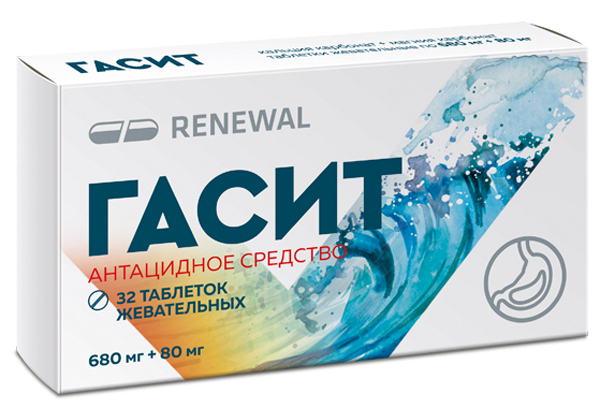 Гасит 680мг+80мг таблетки жевательные N32/Реневал/