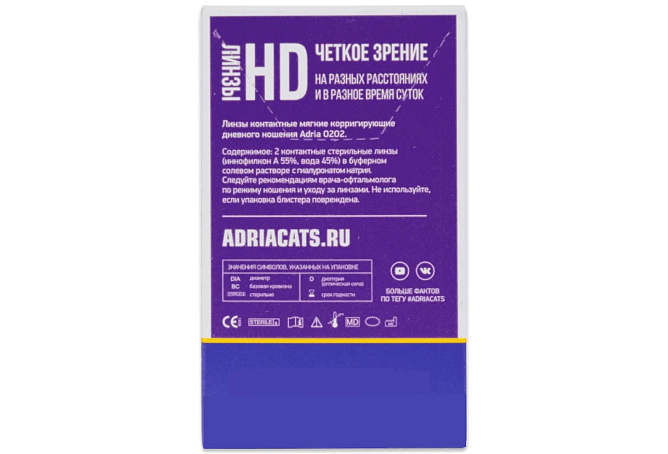 - HD-качество зрения. Линзы ADRIA O2O2 созданы по технологии High Definition vision. Уникальный асферический дизайн передней поверхности линзы обеспечивает повышенную контрастность и ясность зрения в любое время суток, даже в сумерках.