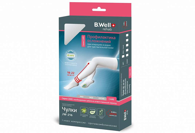 Чулки компрессионные госпитальные 1 класс компрессии без силикона B.Well JW-216. Медицинские чулки рекомендованы для родов, при длительном постельном режиме, для профилактики осложнений при операциях. Можно использовать для лечении варикоза. Универсальные антиэмболические чулки для женщин также подойдут мужчинам.