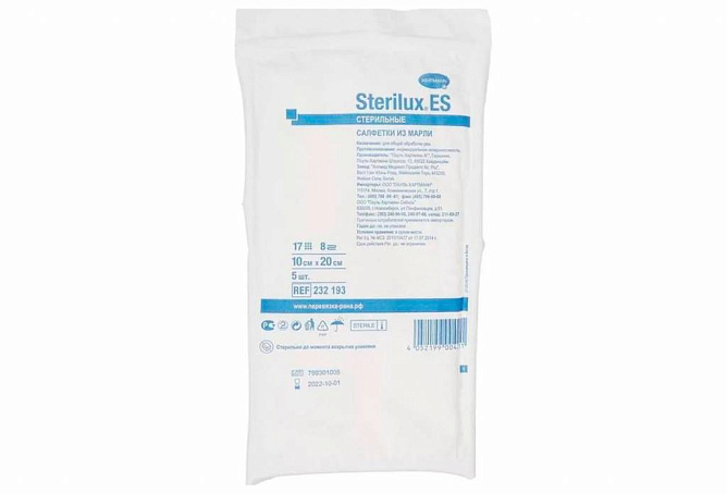 ПХ Салфетки Стерилюкс ES стерильные индивидуальная упаковка 10х20см N5