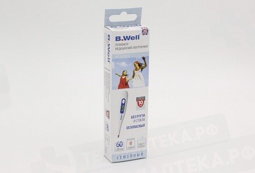 Электронный термометр B.Well WT-03 — это надежный, простой и точный прибор для быстрого измерения температуры тела. Обладает универсальным дизайном и подходит для использования всей семьей. Выполнен в классическом стиле с гибким водонепроницаемым наконечником, обеспечивающим комфорт и безопасность. Термометр измеряет температуру орально, ректально или в подмышечной впадине (аксиллярно). Время измерения составляет примерно 60 секунд при аксиллярном способе. По окончании измерения раздается четкий звуковой сигнал, а результат отображается на крупном и легко читаемом ЖК-дисплее с подсветкой (в зависимости от модификации). Оснащен функцией памяти на последнее измерение и автоматическим отключением для экономии заряда батареи.