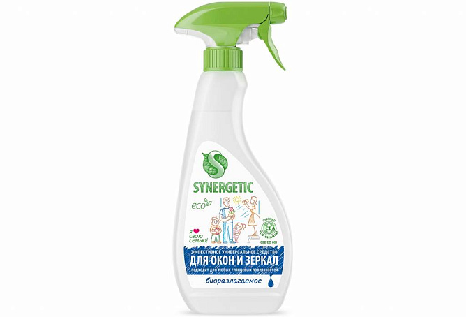 Биоразлагаемое средство для мытья стекол, зеркал и бытовой техники SYNERGETIC - эффективное и универсальное средство для бережного очищения стеклянных, зеркальных и других глянцевых поверхностей. Не требует смывания, улучшает светопроницаемость стекла.