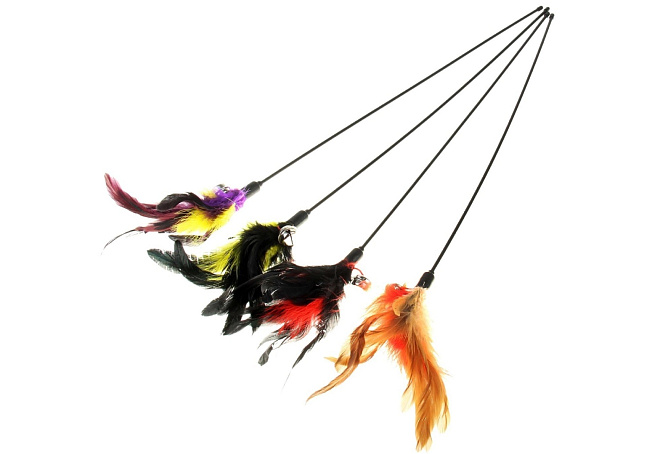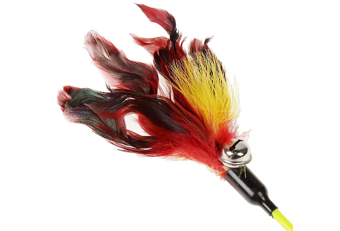Дразнилка игрушка д/животных Фазан с бубенчиком 50 см микс цветов арт.767872