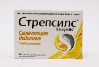 Комбинированный антисептический препарат от боли в горле. Оказывает противомикробное действие. Активен в отношении грамположительных и грамотрицательных микроорганизмов. Круглые двояковыпуклые таблетки малиново-красного цвета с запахом аниса и мяты; допускается неоднородность окрашивания, наличие пузырьков воздуха в карамельной массе и незначительные неровности краев.