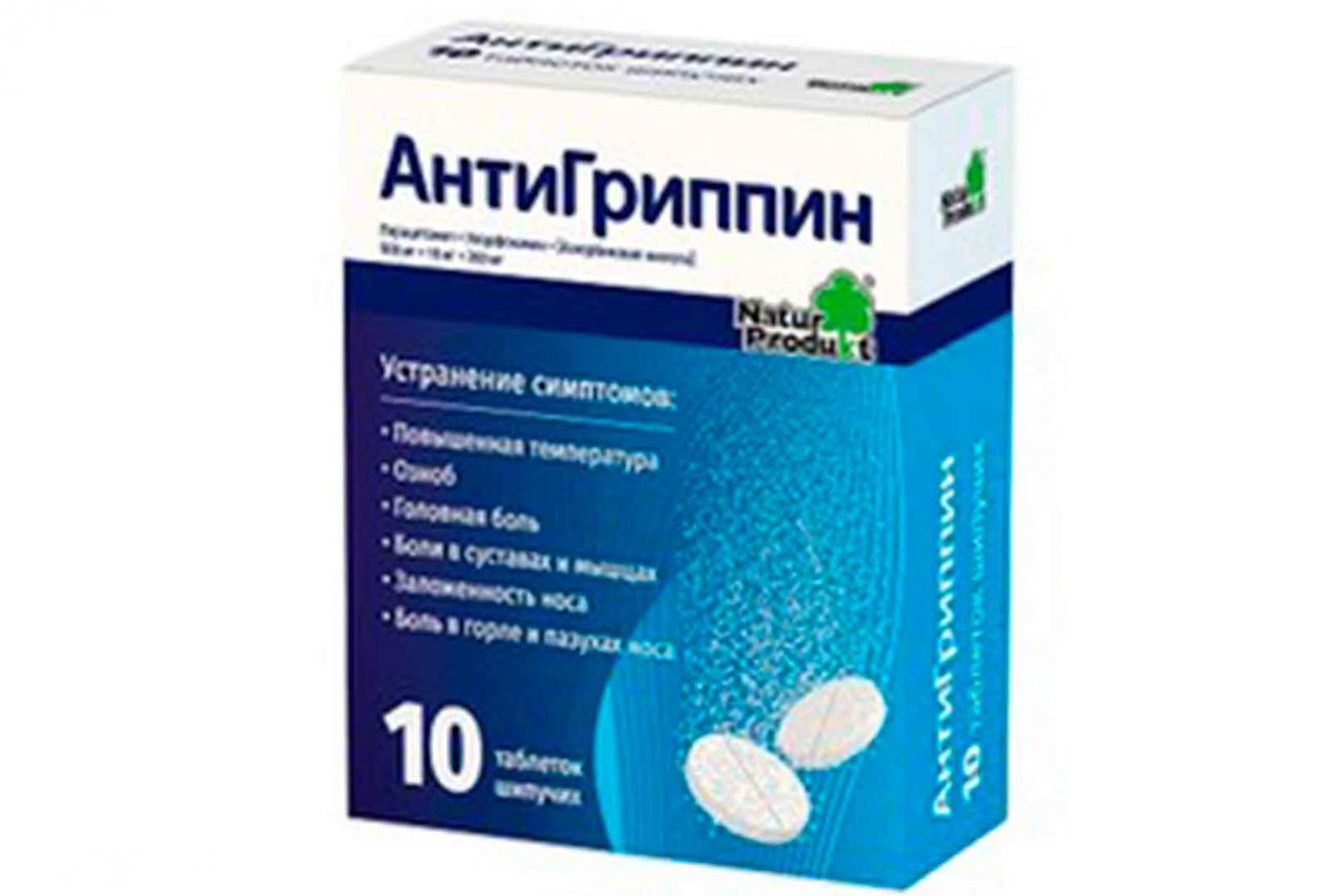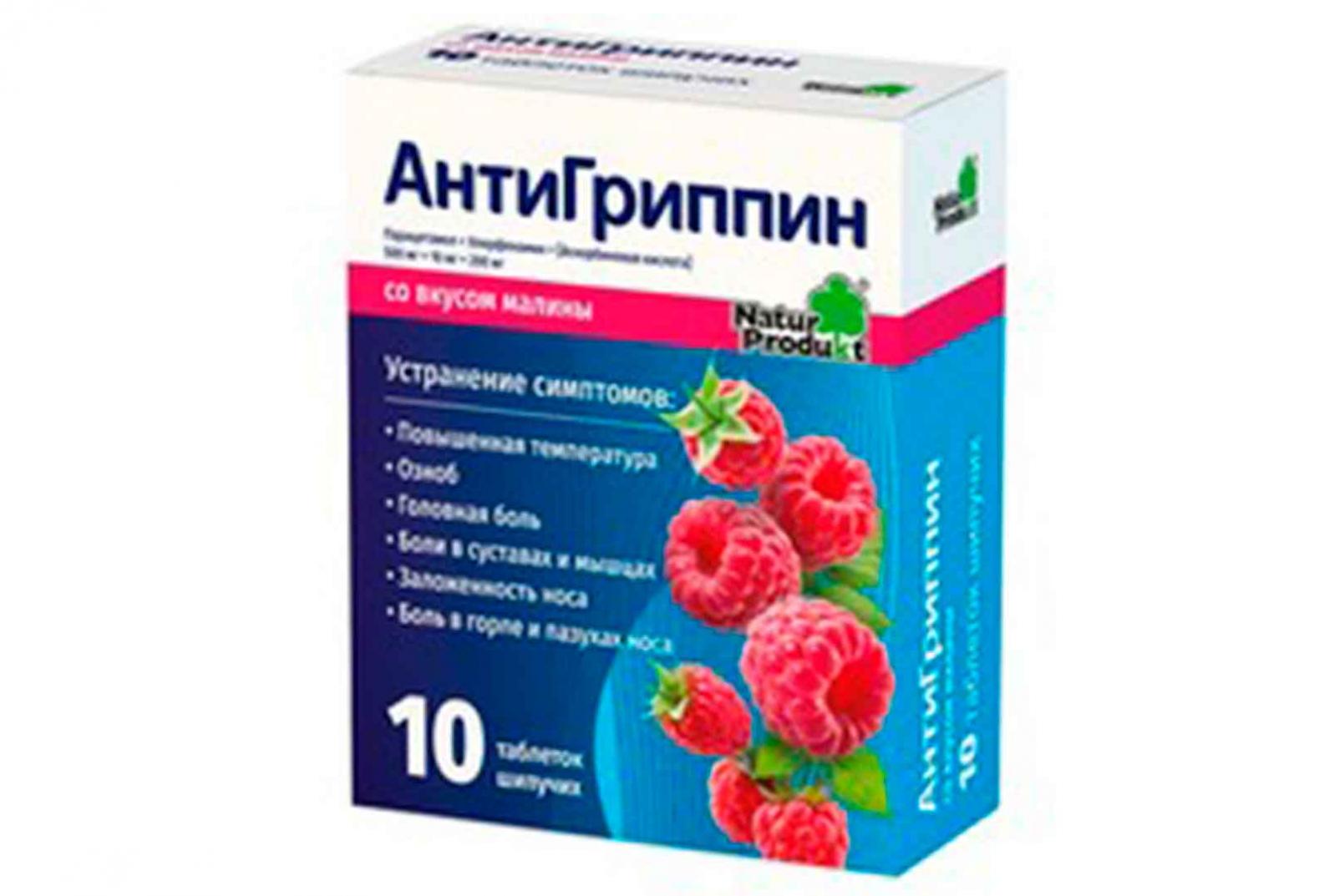 АнтиГриппин от Натур Продукт - комбинированный препарат для лечения инфекционно-воспалительных заболеваний (ОРВИ, грипп), сопровождающихся повышенной температурой, ознобом, головной болью, болями в суставах и мышцах, заложенностью носа и болями в горле и пазухах носа, и применяемый для взрослых и детей с 3-х лет.