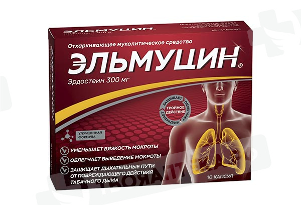 Фармакологическая группа: Отхаркивающее муколитическое средство Код АТХ: R05CB15 Фармакодинамика: Эффективность эрдостеина обусловлена действием активных метаболитов. Тиоловые группы метаболитов вызывают разрыв дисульфидных мостиков, которые связывают одно с другим волокна гликопротеинов, что приводит к уменьшению эластичности и вязкости мокроты. В результате эрдостеин усиливает и ускоряет освобождение респираторных путей от секрета, улучшает секреторную функцию эпителия и увеличивает эффективность мукоцилиарного транспорта в верхних и нижних отделах респираторного тракта. Эрдостеин оказывает антиоксидантное действие и переносит свободные радикалы. В частности эрдостеин защищает дыхательные пути от повреждающего действия сигаретного дыма в отношении инактивации альфа-1-антитрипсина. Эрдостеин увеличивает концентрацию иммуноглобулина А (IgA) в слизистой оболочке дыхательных путей у пациентов с хроническими обструктивными заболеваниями дыхательных путей, а также снижает подавляющее действие табачного дыма на функции гранулоцитов. Эффект от терапии эрдостеином развивается на 3-4 сутки лечения. Эрдостеин как таковой не содержит свободные SH-радикалы, поэтому не оказывает повреждающего действия на желудочно-кишечный тракт, и побочные эффекты со стороны пищеварительной системы не отличаются от эффектов плацебо.