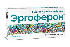 Фармакологическая группа: Противовирусное средство, антигистаминное средство Код АТХ L03AX Фармакодинамика: Спектр фармакологической активности препарата Эргоферон® включает в себя противовирусную, иммуномодулирующую, антигистаминную, противовоспалительную. Компоненты, входящие в препарат, обладают единым механизмом действия в виде повышения функциональной активности CD4 рецептора, рецепторов к интерферону гамма (ИФН гамма) и гистамину, соответственно, что сопровождается выраженным иммунотропным действием. Экспериментально доказано, что антитела к интерферону гамма: повышают экспрессию ИФН гамма, ИФН альфа/бета, а также сопряженных с ними интерлейкинов (ИЛ-2, ИЛ-4, ИЛ-10 и др.), улучшают лиганд-рецепторное взаимодействие ИФН, восстанавливают цитокиновый статус; нормализуют концентрацию и функциональную активность естественных антител к ИФН гамма, являющихся важным фактором естественной противовирусной толерантности организма; стимулируют интерферонозависимые биологические процессы: индукцию экспрессии антигенов главного комплекса гистосовместимости I, II типов и Fc-рецепторов, активацию моноцитов, стимуляцию функциональной активности NK-клеток, регуляцию синтеза иммуноглобулинов, активируя смешанный Тh1 и Тh2 иммунный ответ. Антитела к СD4, вероятно являясь аллостерическими модуляторами данного рецептора, регулируют функциональную активность CD4 рецептора, что приводит к повышению функциональной активности CD4+ лимфоцитов, нормализации иммунорегуляторного индекса CD4+/CD8+, а также субпопуляционного состава иммунокомпетентных клеток (CD3+, CD4+, CD8+, CD16+, CD20+). Антитела к гистамину модифицируют гистамин-зависимую активацию периферических и центральных H1-рецепторов и, таким образом, снижают тонус гладкой мускулатуры бронхов, уменьшают проницаемость капилляров, что приводит к сокращению длительности и выраженности ринореи, отека слизистой оболочки носа, кашля и чихания, а также уменьшению выраженности сопутствующих инфекционному процессу аллергических реакций за счет подавления высвобождения гистамина из тучных клеток и базофилов, продукции лейкотриенов, синтеза молекул адгезии, снижения хемотаксиса эозинофилов и агрегации тромбоцитов в реакциях на контакт с аллергеном. Совместное применение компонентов комплексного препарата сопровождается усилением противовирусной активности входящих в него компонентов. В ходе проводимых экспериментальных и клинических исследований установлена терапевтическая эффективность в отношении вирусов гриппа, парагриппа, риновируса, метапневмовируса, сезонных штаммов коронавирусов, бокавируса, респираторно-синцитиального вируса, респираторных и кишечных штаммов аденовируса, ротавирусов, норовирусов, астровирусов, а также неспецифическая профилактическая эффективность в отношении SARS-CoV-2. В клиническом исследовании установлено снижение риска заболевания COVID-19 в 3 раза в период проведения вакцинации между введением I и II компонентов вакцины «Гам-КОВИД-Вак» на фоне профилактического приема препарата Эргоферон®.