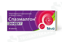 Спазмалгон®-комбинированный препарат, в состав которого входят: ненаркотический анальгетик метамизол натрия, миотромное спазмолитическое средство питофенон и м-холиноблокирующее средство фенпивериния бромид. Сочетание компонентов препарата приводит к взаимному усилению их фармакологического действия: облегчению боли, расслаблению гладких мышц и снижению повышенной температуры тела. Круглые, плоские таблетки с фаской и с риской с одной стороны, белого или почти белого цвета.
