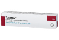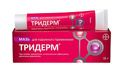 Фармакологическая группа: Противовоспалительное, антибактериальное, противогрибковое средство Код АТХ D07XC01 Фармакодинамика: Комбинированный препарат для наружного применения. Крем Тридерм сочетает в себе противовоспалительный, противозудный, противоаллергический и антиэкссудативный эффект бетаметазона дипропионата с противогрибковой активностью клотримазола и широким антибактериальным действием гентамицина сульфата. Клотримазол оказывает противогрибковое действие за счет нарушения синтеза эргостерина, являющегося составной частью клеточной мембраны грибов. Активен в отношении Trichophyton rubrum, Trichophyton mentagrophytes, Epidermophyton floccosum, Microsporum canis, Candida albicans, Pityrosporum orbiculare (Malassezia furtur). Гентамицин является антибиотиком широкого спектра действия из группы аминогликозидов. Действует бактерицидно и обеспечивает высокоэффективное местное лечение первичных и вторичных бактериальных инфекций кожи. Активен в отношении грамотрицательных бактерий: Pseudomonas aeruginosa, Aerobacter aerogenes, Escherichia coli, Proteus vulgaris и Klebsiella pneumoniae; грамположительных бактерий: Staphylococcus aureus (коагулаза-положительные, коагулаза-отрицательные и некоторые штаммы, продуцирующие пенициллиназу).